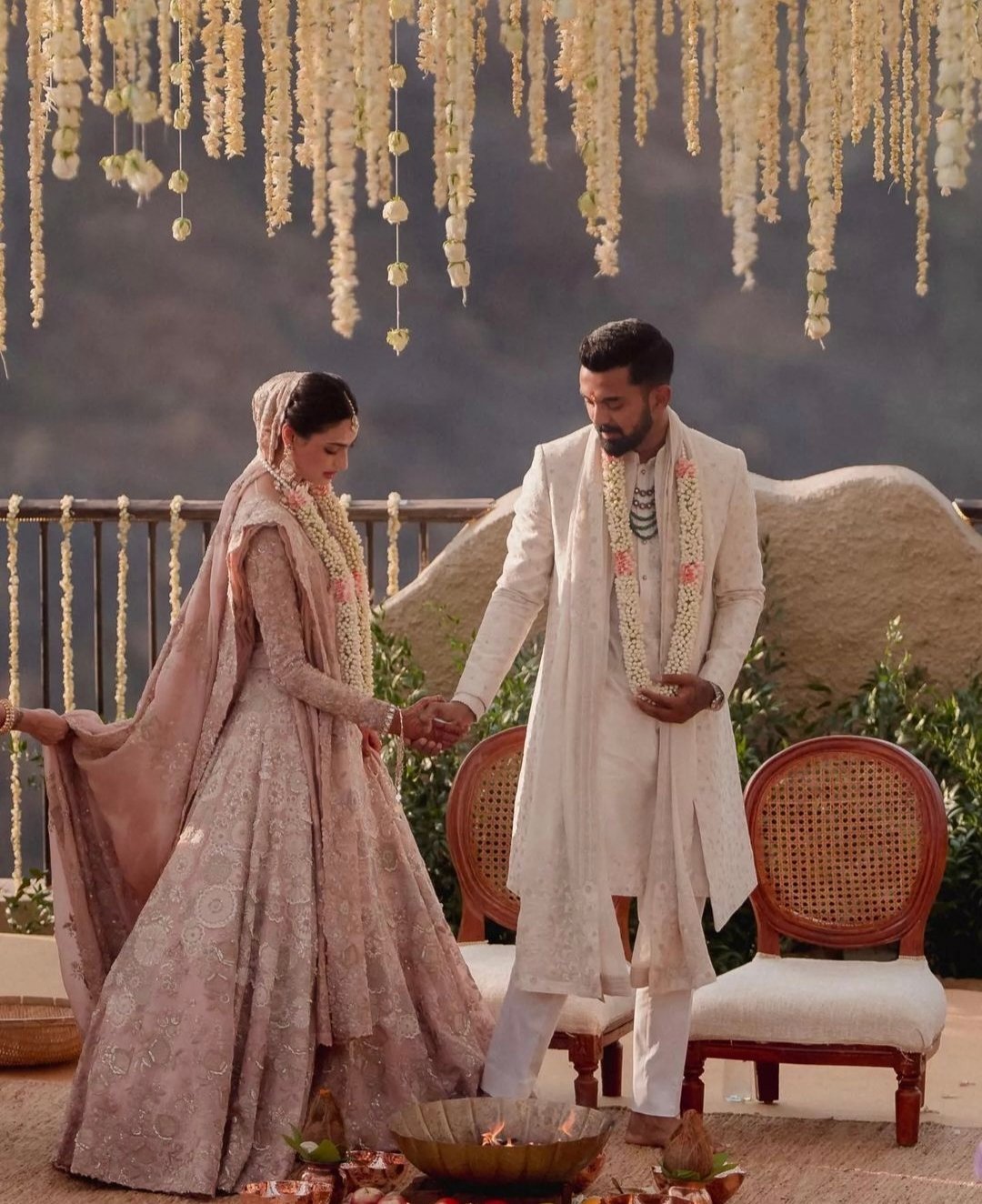 वहीं के.एल राहुल ने ट्रेंड के अकॉर्डिंग व्हाइट कलर का शेरवानी चुना था।