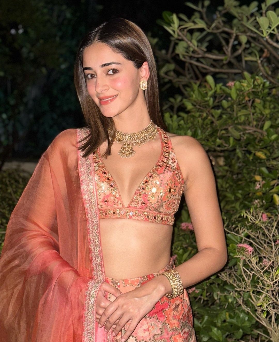 इस पीच ड्रेस में अनन्या बला की खूबसूरत लग रही हैं।