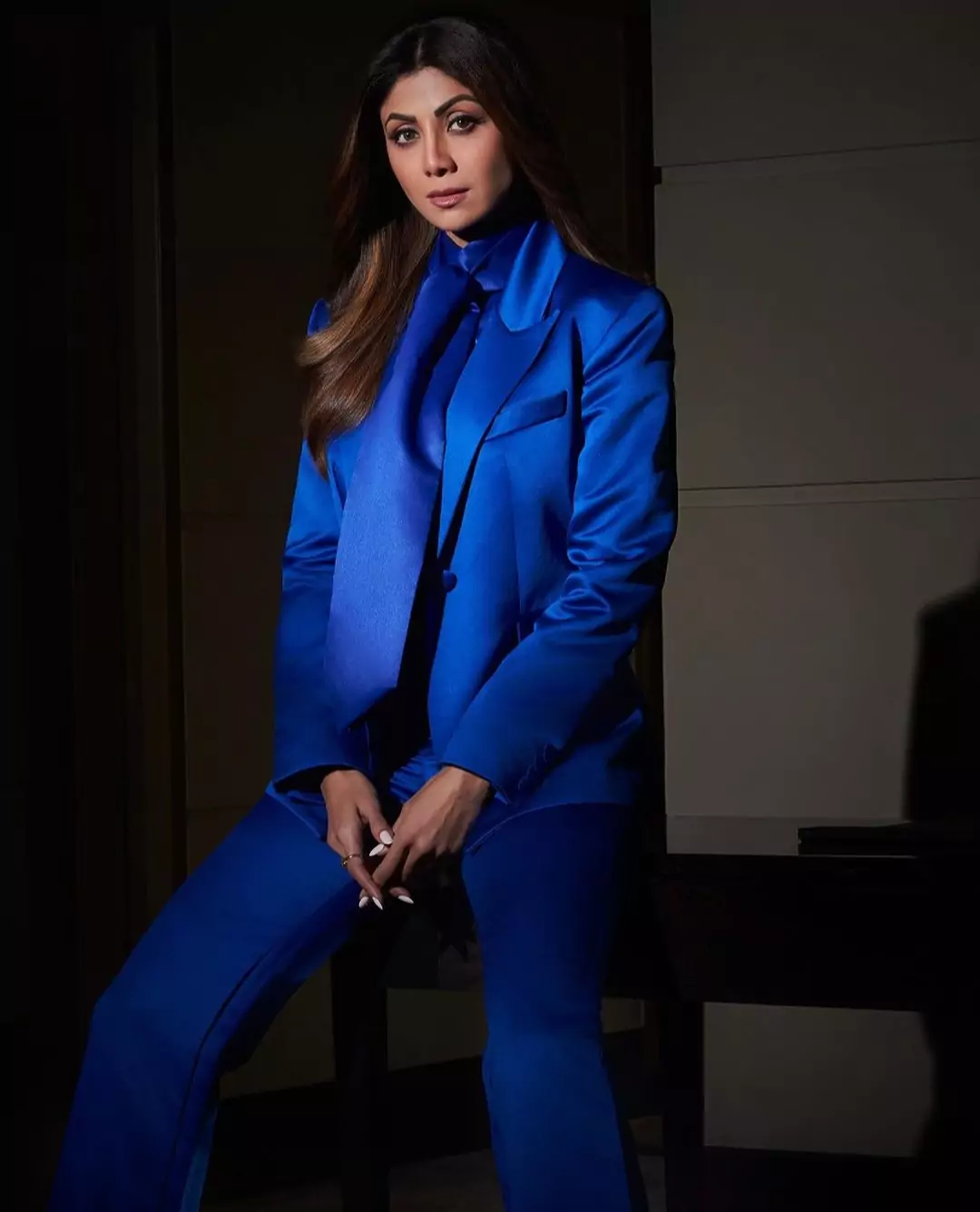 ब्लू पैंट सूट में शिल्पा शेट्टी का रॉयल लुक