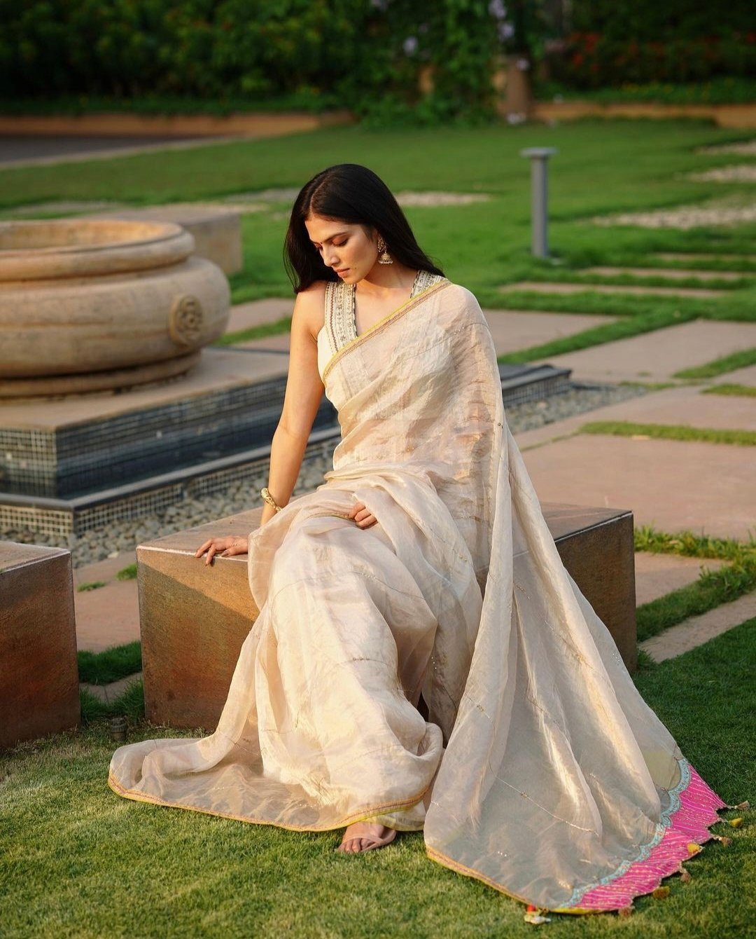 जिसमें उन्होंने राजी रमणीक का डिजाइन किया हुआ सिल्क साड़ी पहना हुआ है।