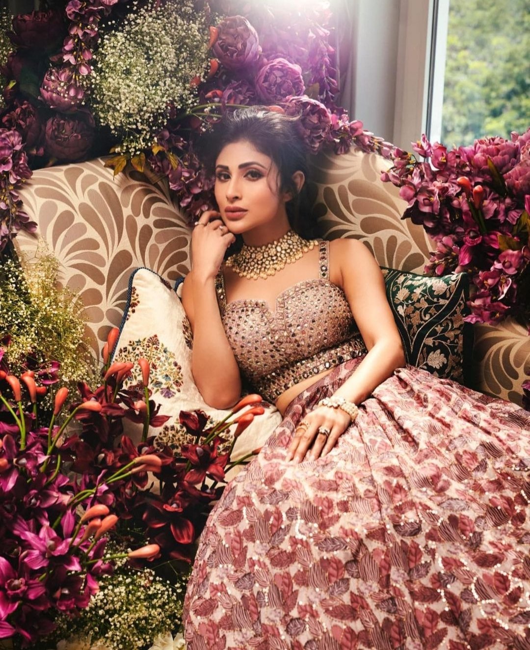 मौनी ने खूबसूरत फ्लोरल लहंगे के साथ में खूबसूरत फ्लोरल ज्वेलरी भी कैरी किया है।