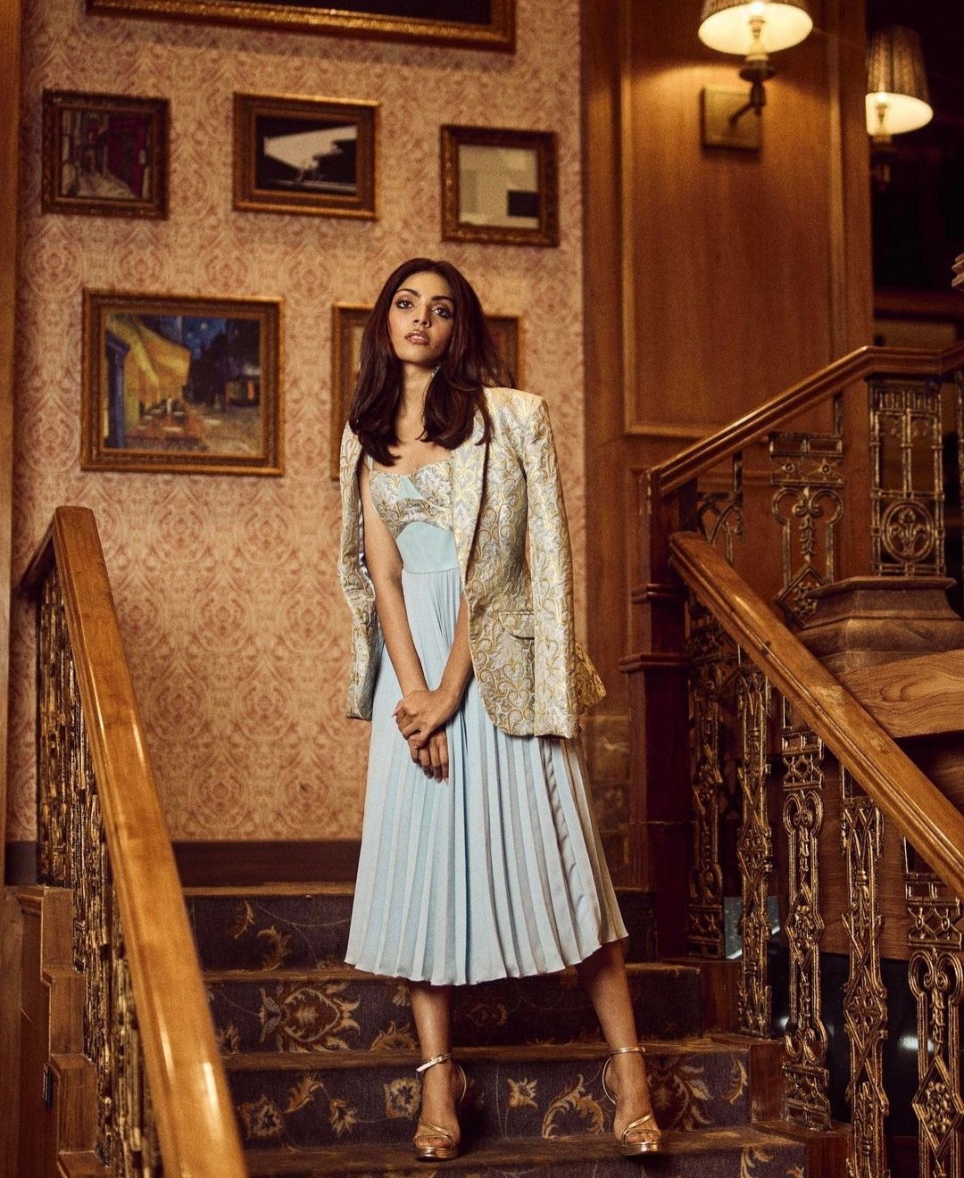 दिविता ने "Virshete" का डिजाइन किया हुआ खूबसूरत ड्रेस पहना हुआ है।
