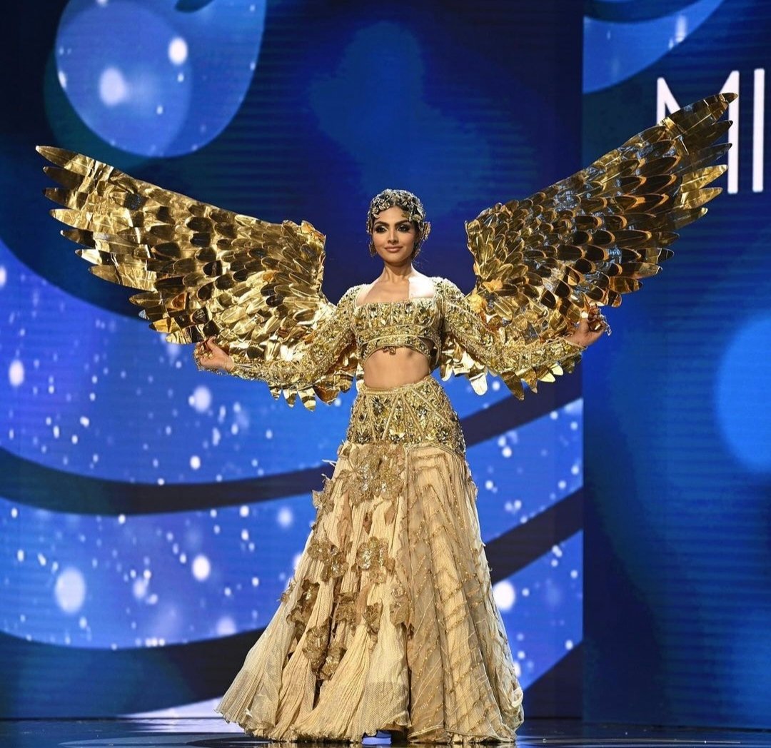 दिविता ने नेशनल कॉस्टयूम को रिप्रजेंट करने के लिए गोल्डन बर्ड का आउटफिट चुना।