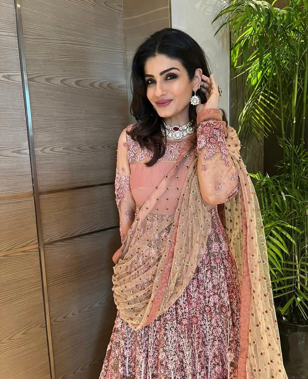 तस्वीरों में रवीना खूबसूरत अनारकली पहने हुए नजर आ रही हैं।