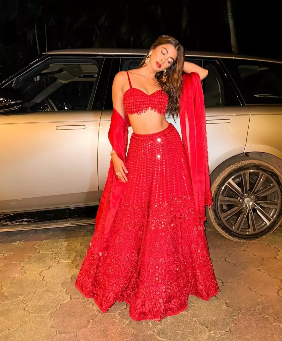 रेड लहंगे में पूजा हेगडे के ग्रेसफुल लुक्स
