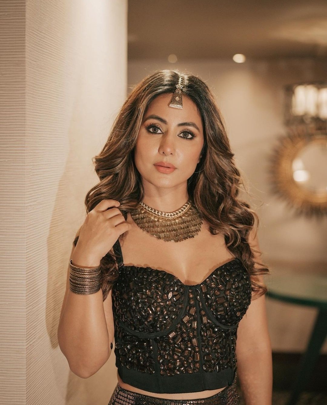 हिना का ये ब्लैक शरारा और ब्लैक कोरसेट तो गजब का सुंदर है।
