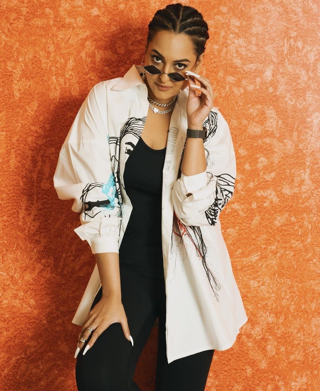 ब्लैक बूट और कॉर्न रो हेयरस्टाईल में सोनाक्षी का अंदाज ही अलग है।