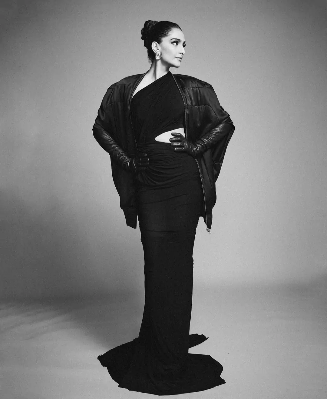 ब्लैक ग्लव्स के साथ सोनम ने अपने लुक को कंप्लीट किया था।