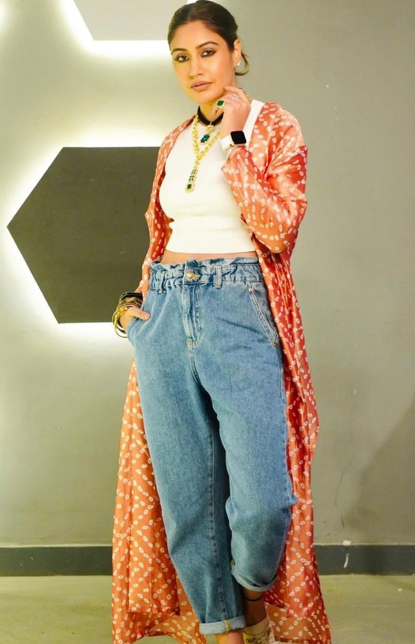 इन तस्वीरों में सुरभि ने जींस टॉप के साथ एक लॉन्ग श्रग पेयर किया है।