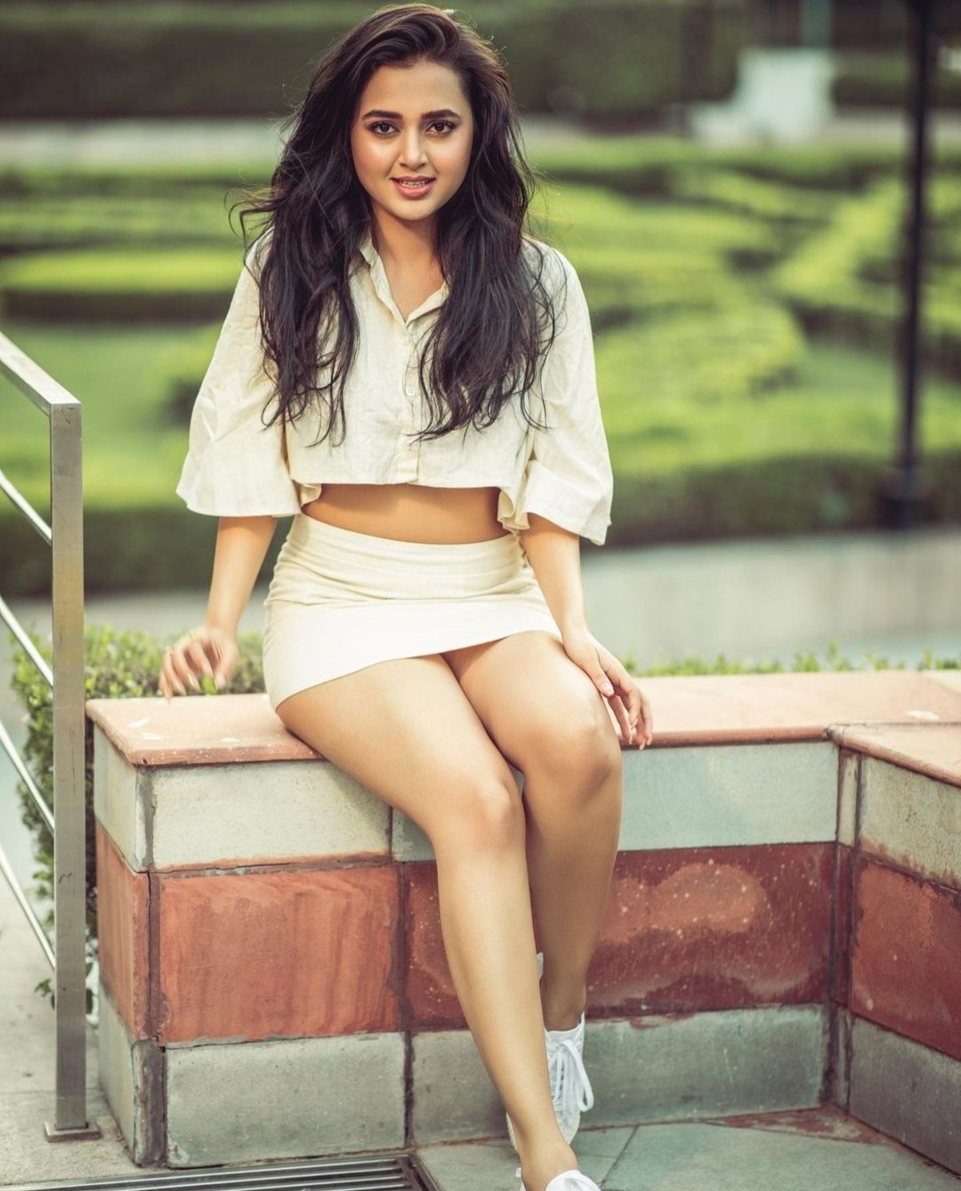 तेजस्वी ने अपने लुक को ग्लॉसी मेकअप और स्नीकर्स के साथ कंपलीट किया है।